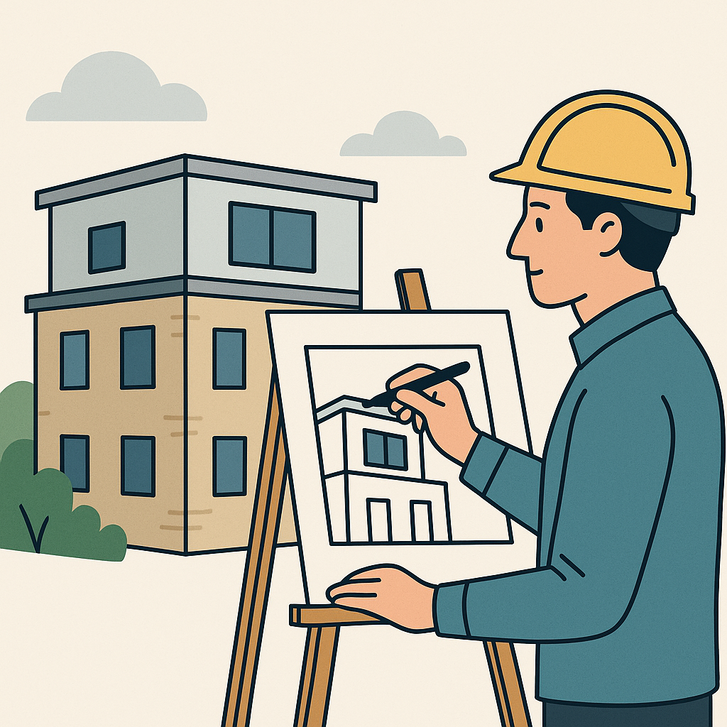 2️⃣ Entwurfsplanung: Sie erhalten ein individuell abgestimmtes Konzept für Ihre Flachdach-Aufstockung – funktional, modern und genehmigungsfähig.