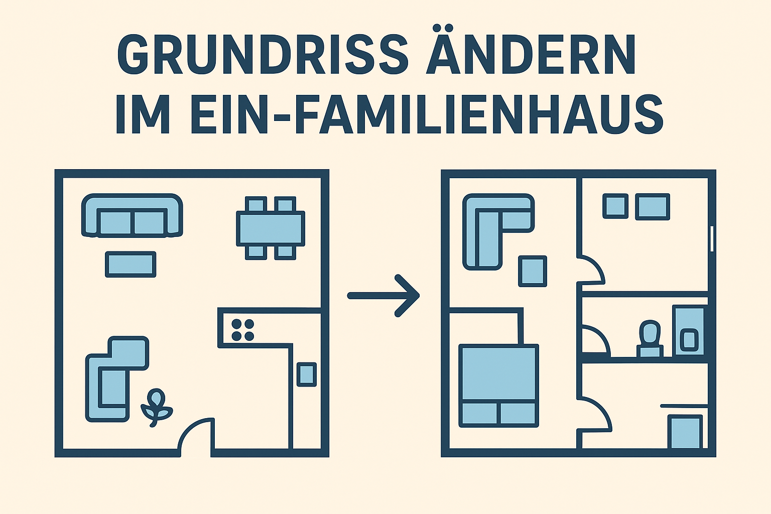 Viele Eigentümer:innen möchten den Grundriss ihres Einfamilienhauses ändern – etwa, um mehr Raumgefühl zu schaffen, kleine Zimmer zusammenzulegen oder eine moderne, offene Wohnstruktur zu realisieren.