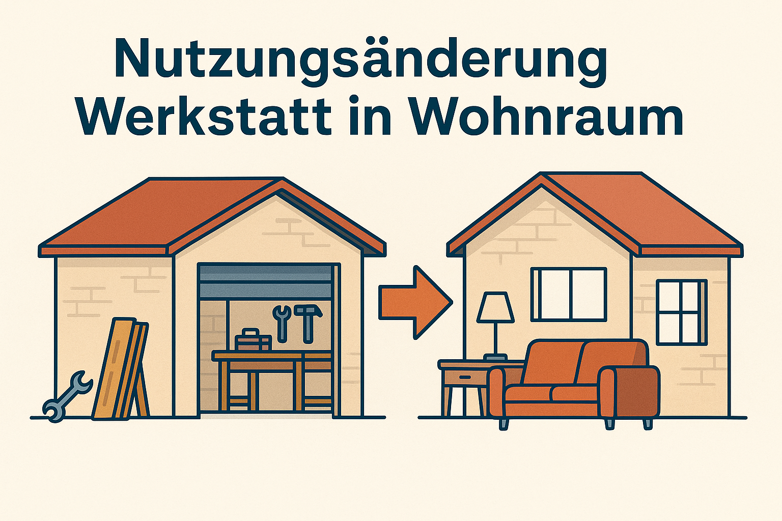 Eine Nutzungsänderung ist immer dann erforderlich, wenn ein Gebäude künftig anders genutzt werden soll, als es ursprünglich genehmigt wurde. Eine Werkstatt ist baurechtlich nicht als Wohnraum vorgesehen. Soll sie künftig als Wohnung, Gästezimmer oder Büro genutzt werden, ist eine Genehmigung durch das Bauamt Pflicht.